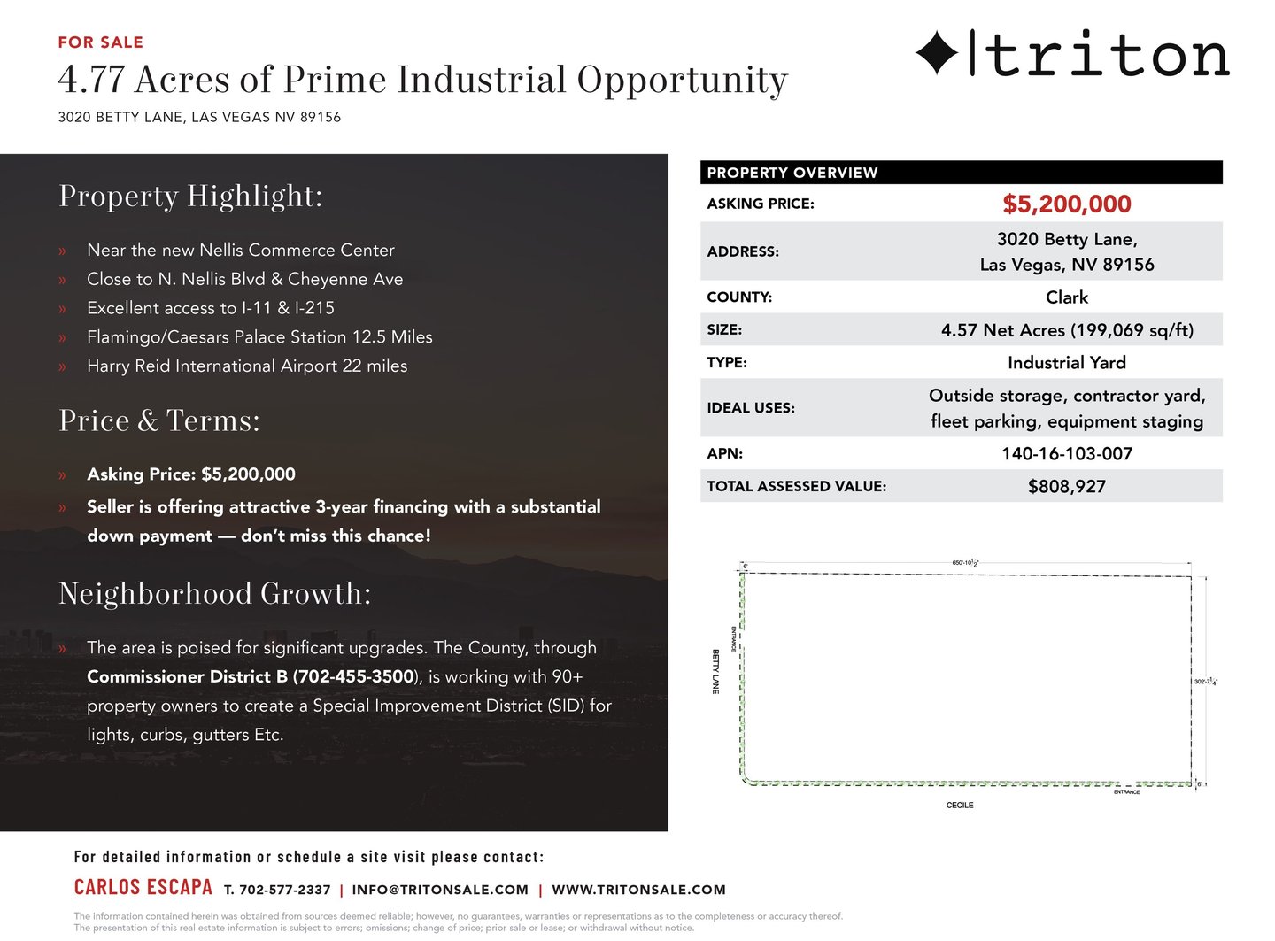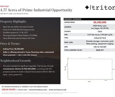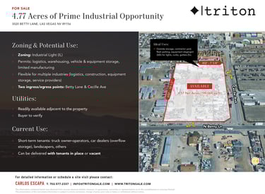 With quick access to I-11 and I-215, this site is a natural hub for fleet parking, outdoor storage, flex-industrial space and so much more!